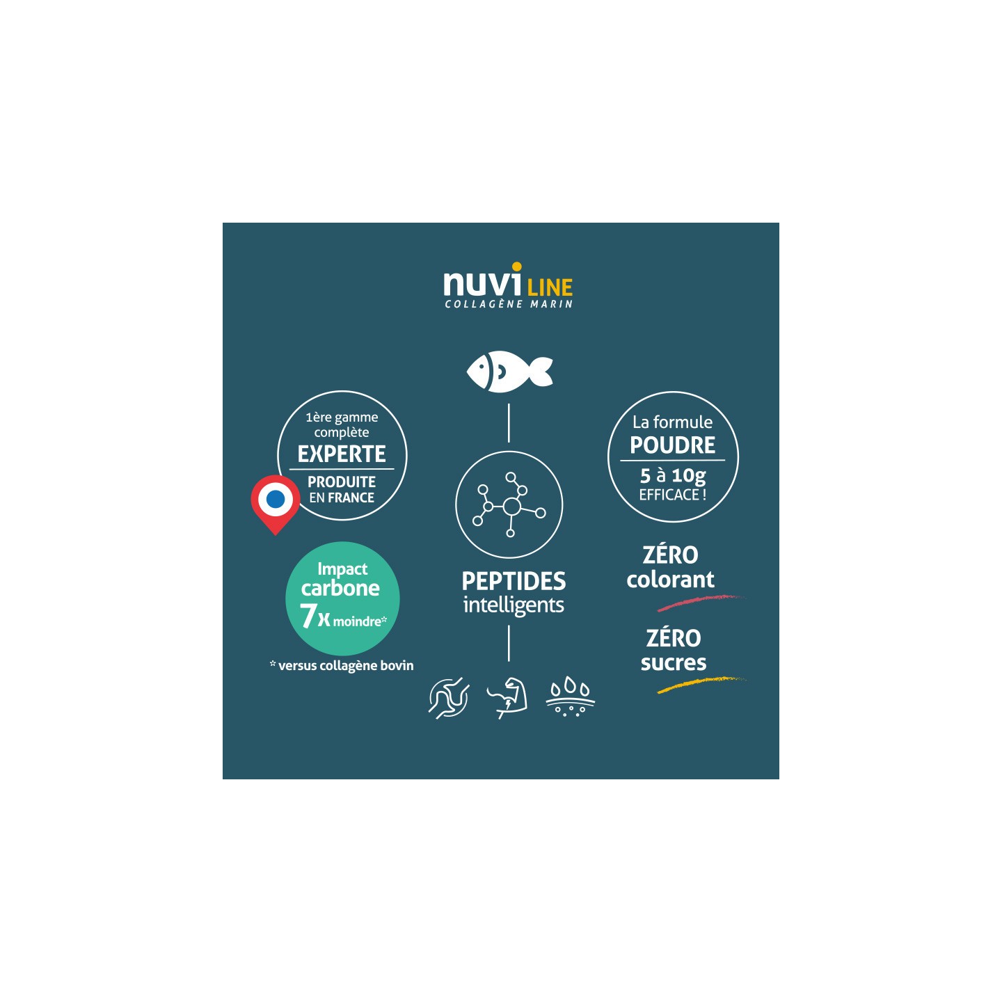 - È composto da proteine sotto forma di un profilo peptidico bioattivo unico (idrolisi enzimatica) di collagene marino naturale derivato da un approccio di sviluppo sostenibile (ASC Aquaculture Stewardship Council, BAP Best Aquaculture Practice e MSC sustainable fishing labels).